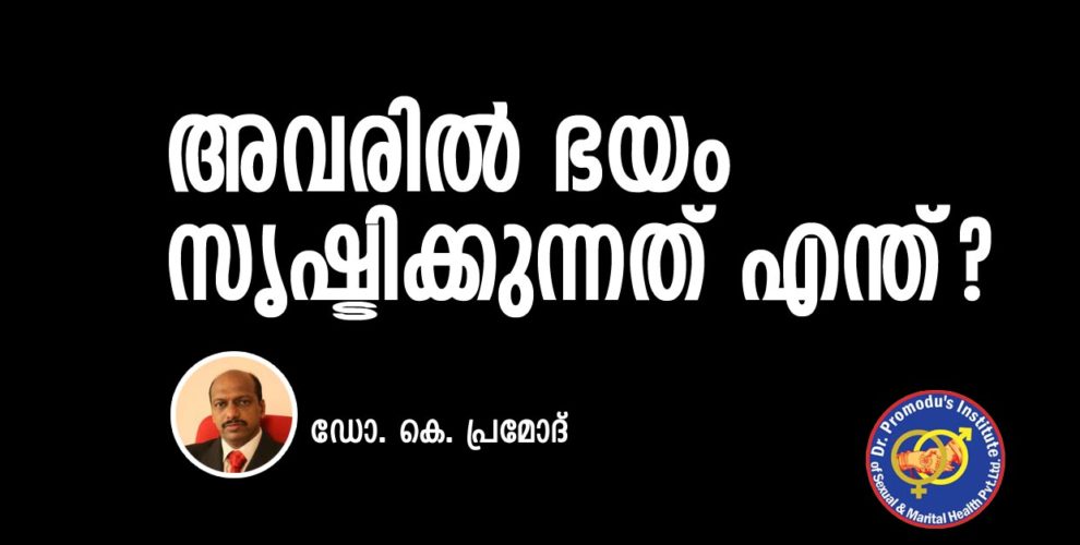 നവ ദമ്പതികളിൽ കൂടുതലായി കാണപ്പെടുന്ന ഒരു പ്രശ്‌നമാണിത്. കൂടുതലും സ്ത്രീകളിലാണ് ഏറെ കാണപ്പെടുന്നത്. ചില സ്ത്രീകൾക്ക് അവരുടെ ലൈംഗീകാവയവത്തിൽ സ്പർശിക്കുന്നതുപോലും ഭയമാണ്. ഈ ഭയം ലൈംഗിക ബന്ധത്തിന് തടസമാവുകയും ചെയ്യുന്നു. വിവാഹശേഷം 21 വർഷം പൂർത്തിയാക്കിയിട്ടും ഭയംമൂലം ലൈംഗിക ബന്ധത്തിലേർപ്പെടാൻ കഴിയാതിരുന്ന രോഗികൾ ഡോ. പ്രമോദ്‌സ് ഇൻസ്റ്റിറ്റ്യൂട്ടിൽ വിജയകരമായി ചികിത്സ പൂർത്തിയാക്കി പോയിട്ടുണ്ട്. ഈ വ്യക്തികൾക്ക് ലൈംഗിക ബന്ധത്തിലേർപ്പെടണമെന്നും ഭർത്താവിനോട് പൂർണ്ണമായും സഹകരിക്കണമെന്നും ആത്മാർത്ഥമായ ആഗ്രമുണ്ടെങ്കിലും ഭയം നിമിത്തം അതിന് കഴിയാറില്ല. കൗമാര പ്രായത്തിലെപ്പോഴെങ്കിലും കൂട്ടുകാരിൽനിന്നോ ബന്ധുക്കളിൽനിന്നോ ലൈംഗിക ബന്ധത്തെപ്പറ്റി കേട്ടിട്ടുള്ള പേടിപ്പെടുത്തുന്ന കഥകളോ വായിച്ചറിഞ്ഞ കഥകളോ ആയിരിക്കാം ഇത്തരം ഭയത്തിന് പിന്നിൽ.