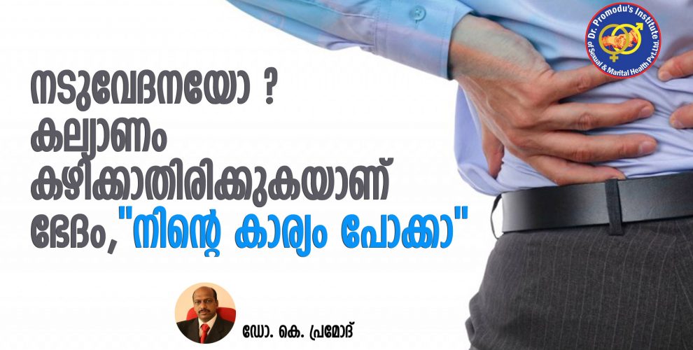 ദേഷ്യം വന്നപ്പോള് കൂട്ടുകാരിലൊരാളായ രാജേഷ് പറഞ്ഞു. ഇത്ര ചെറുപ്പത്തിലെ ഇത്രയും വലിയ നടുവേദനയും കൊണ്ടു നടന്നാല് ”നിന്റെ കാര്യം പോക്കാ” ഇങ്ങനെയാണെങ്കില് നീ കല്യാണം കഴിക്കാതിരിക്കുകയാണ് ഭേദം. അല്ലെങ്കില് അവള് വല്ലവന്റേയും കൂടെ പോയെന്നുവരും. സുധീഷിന്റെ മനസ്സില് ഒരായിരം കൊള്ളിയാനുകള് ഒന്നിച്ചുമിന്നി.