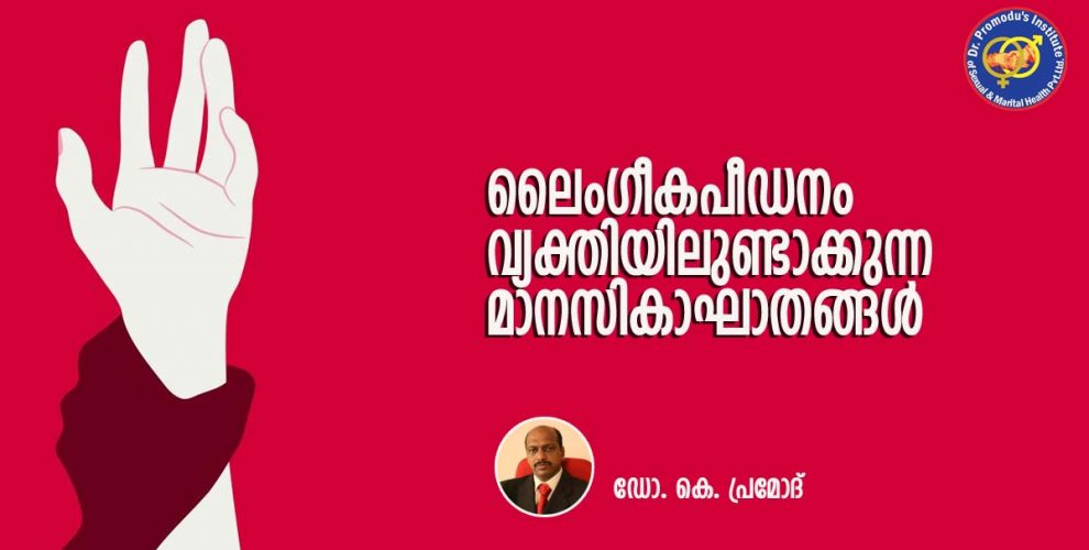 പീഡനം ഒരു വ്യക്തിയിൽ മാനസികമായുണ്ടാക്കുന്ന ആഘാതം വലുതാണ്. പലരിലും ഇത് ജീവിതാവസാനംവരെ നിലനിൽക്കും. ലൈംഗികതയോടും എതിർലിംഗത്തോടുമുള്ള എതിർപ്പ്, ഭയം എന്നിവയെല്ലാം ഇതിന്റെ ബാക്കിപത്രമാണ്.