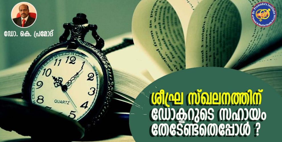 ∙ യോനിക്കുള്ളില് പ്രവേശിച്ചു ഒരു മിനിറ്റിനുള്ളില് സ്ഖലനം സംഭവിക്കുന്നത് സ്ഥിരമായി സംഭവിച്ചാല്.