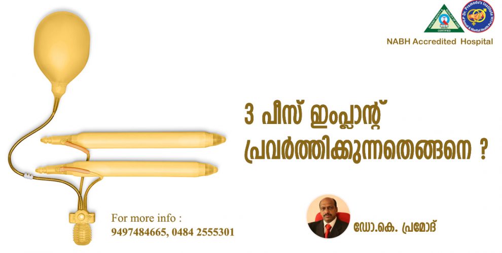 രണ്ട് ട്യൂബുകളും ഒരു സംഭരണിയും ഒരു പമ്പും ചേര്‍ന്ന 3പീസ് ഇംപ്ലാന്‍റാണ് മറ്റൊന്ന്. ഇതിന്‍റെ സംഭരണി വയറിനുള്ളിലും ട്യൂബുകള്‍ ലിംഗത്തിനുള്ളിലും പമ്പുകള്‍ വൃഷണ സഞ്ചിയിലും വെക്കുന്നു. വൃഷണ സഞ്ചിയിലെ പമ്പ് പ്രവൃത്തിക്കുന്നതനുസരിച്ച് വയറിനുള്ളിലെ സംഭരണിയില്‍ നിറച്ചിരിക്കുന്ന ദ്രാവകം ലിംഗത്തിലേയ്ക്ക് ഇറങ്ങുകയും ദൃഢത കൈവരിച്ച് ഉയര്‍ന്നുവരുകയും ചെയ്യുന്നു. ആവശ്യം കഴിയുമ്പോള്‍ വൃഷണ സഞ്ചിയിലെ പമ്പിന്‍റെ ഒരു ബട്ടണ്‍ അമര്‍ത്തിപ്പിടിച്ചാല്‍ ട്യൂബില്‍ നിന്നും ദ്രാവകം തിരിച്ച് സംഭരണിയിലേയ്ക്ക് പോകുകയും ഉദ്ധാരണം ഇല്ലാതാകുകയും ചെയ്യുന്നു. ഉപയോഗിക്കുന്ന ഇംപ്ലാന്‍റുകളുടെ തരവും വിലയുമനുസരിച്ച് ഓപ്പറേഷനു വേണ്ടിവരുന്ന ചെലവ് വ്യത്യാസപ്പെട്ടിരിക്കുന്നു.