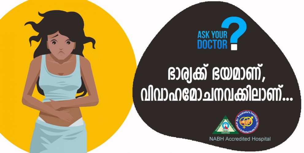 ഉത്തരം : തീര്‍ച്ചയായും പരിഹാരം ഉണ്ട്. ഭയം മാറ്റാനുള്ള ഏറ്റവും ഉചിതമായ ചികിത്സ സെക്സ് തെറാപ്പിയാണ്. ഈ സാധ്യതകള്‍ ഒന്നും പരീക്ഷിക്കാതെ ദ്രുതഗതിയില്‍ വിവാഹമോചനത്തിലേക്ക് പോകുന്നത് മൌഡ്യം എന്നേ പറയാനാകൂ..എത്രയോ പേര്‍ക്ക് സെക്സ് തെറാപ്പിയിലൂടെ വൈവാഹീക ബന്ധം അതിന്‍റെ ഊഷമളാര്‍ത്ഥത്തില്‍ സാധ്യമായിരിക്കുന്നു..