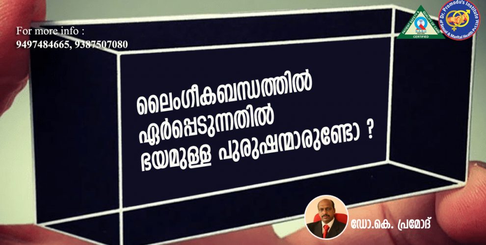 ലൈംഗീക ബന്ധത്തില് ഏര്പ്പെടുന്നതില് ഭയമുള്ള പുരുഷന്മാര് ഉണ്ട്…ഒരിക്കലും കാണില്ല എന്നാകും മുകളിലെ വാചകം വായിച്ചപ്പോള് ആദ്യം മനസ്സില് തോന്നിയിരിക്കുക..ഒരു ചെറിയ വിഭാഗം പുരുഷന്മാര്ക്ക് ആണ് ഇത്തരമൊരു പ്രശ്നം അനുഭവപ്പെടുന്നത്. നേരിട്ട് അനുഭവമുള്ള കേസുകളുടെ ചികിത്സാ പശ്ചാത്തലത്തില് നിന്നാണ് ഇത്തരം ഒരു ചിന്ത പങ്കു വെക്കുന്നത്.