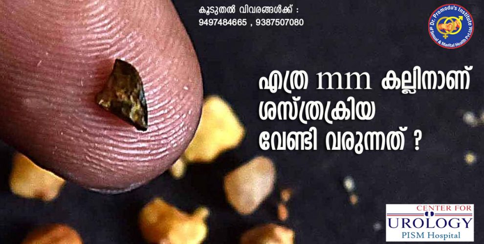 കല്ലിന് 1 mm വലുപ്പം ആണുള്ളതെങ്കില്‍ അത് നൂറു ശതമാനവും തനിയെ മാറും. 2 mm വലുപ്പത്തില്‍ 90 ശതമാനവും 3 mm വലുപ്പത്തില്‍ 87 ശതമാനവും 4 mm വലുപ്പത്തില്‍ 78 ശതമാനവും 5 mm വലുപ്പത്തില്‍ 57 ശതമാനവും ആണ് തനിയെ പോകാനുള്ള സാധ്യതയുള്ളത്. 6 mm വലുപ്പത്തില്‍ 35 ശതമാനവും 7 mm വലുപ്പത്തില്‍ 25 ശതമാനവും മാത്രമായി തനിയെ പോകാനുള്ള സാധ്യത കുറയും. 6 mm വലുപ്പത്തിലുള്ള കല്ല്‌ മുതല്‍ക്കേ ശസ്ത്രക്രിയയുടെ ആവശ്യകത ഉയരുന്നു എന്നാണു പഠനങ്ങള്‍ തെളിയിക്കുന്നത്. ഈ ഘട്ടം മുതല്‍ ശസ്ത്രക്രിയ അനിവാര്യമാണ്.