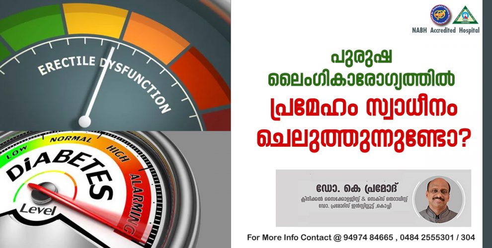 പ്രമേഹം പുരുഷ ലൈംഗികാരോഗ്യത്തിൽ കാര്യമായ സ്വാധീനം ചെലുത്തുമെന്നതിൽ സംശയമില്ല. ഉദ്ധാരണം നേടുന്നതിലും നിലനിർത്തുന്നതിലും പ്രത്യേകം ഉൾപ്പെട്ടിരിക്കുന്ന രക്തക്കുഴലുകൾക്കും ഞരമ്പുകൾക്കും കേടുപാടുകൾ വരുത്തുന്നതിലൂടെ പ്രമേഹം ഉദ്ധാരണക്കുറവിന് കാരണമാകും. ഇത് ടെസ്റ്റോസ്റ്റിറോൺ അളവ് കുറയ്ക്കാനും ലൈംഗികാഭിലാഷം കുറയ്ക്കാനും കാരണമാകും.